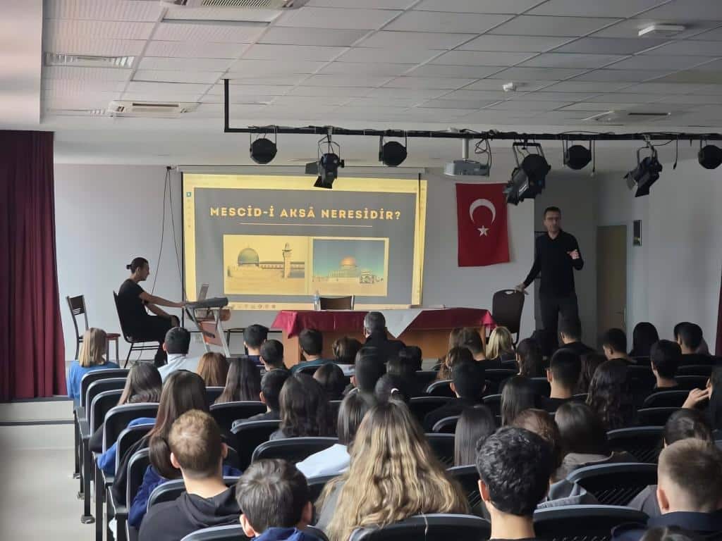 Programda, Filistin’de yaşanan insan hakları ihlallerine dikkat çekilerek, öğrencilerimizde barış, adalet ve insanlık değerlerine duyarlılık kazandırılması amaçlandı. Öğrencilerimizin hazırladığı sunumlar ve konuşmalar aracılığıyla, mazlum halkların yaşadığı acılara karşı farkındalık oluşturuldu.